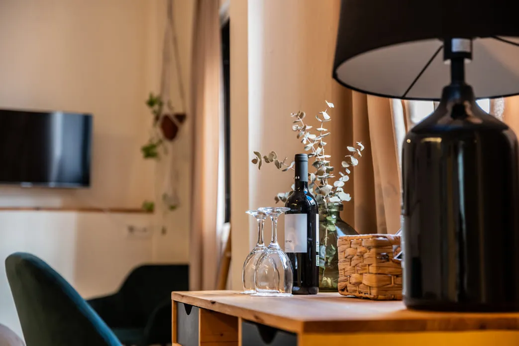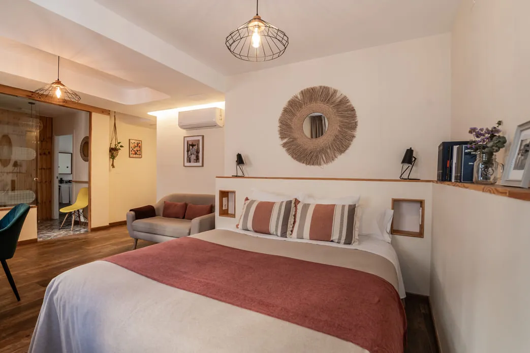 Tiene entrada independiente desde la calle o desde el hotel. Mini frigorífico a su disposición. También cuenta con hervidor eléctrico con diferentes tés e infusiones, cortesía del hotel. Su decoración está basada en los tonos tierra, madera, plantas colgantes y otras flores, que aportan serenidad y armonía.